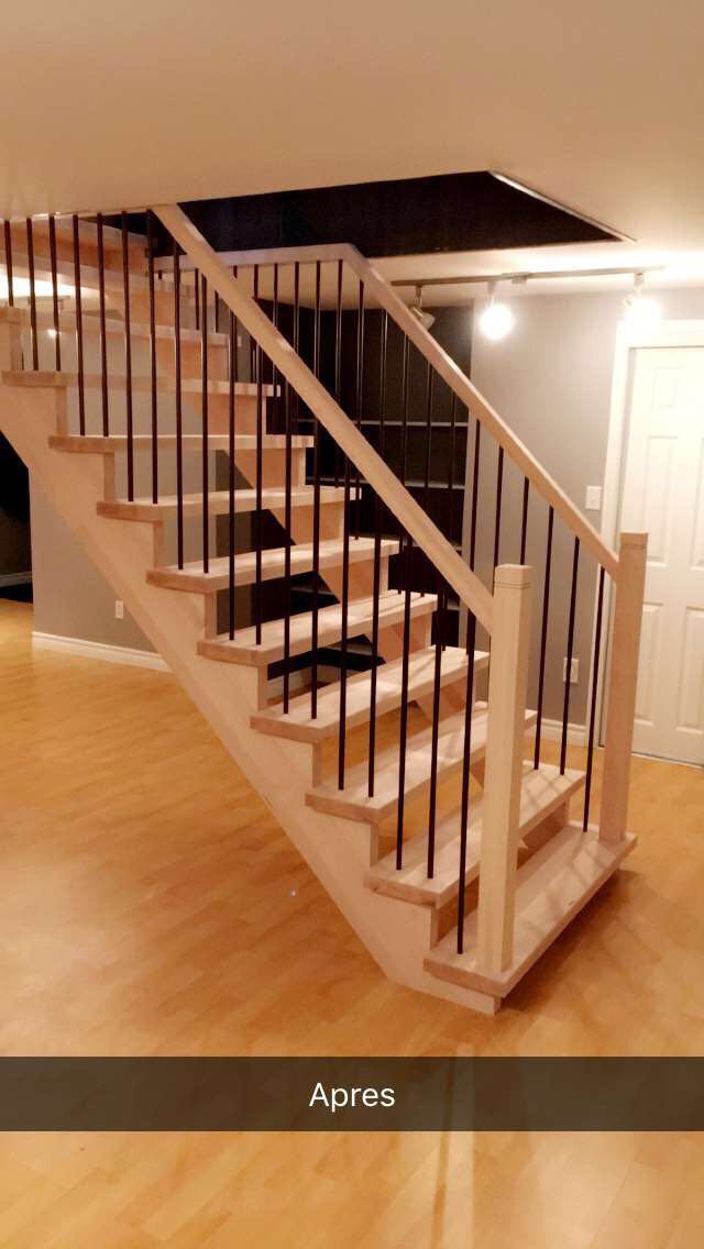 Duo d’escalier fermé et escalier ouvert avec limon central en érable.